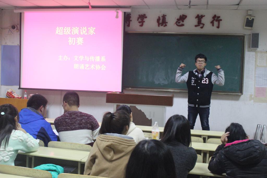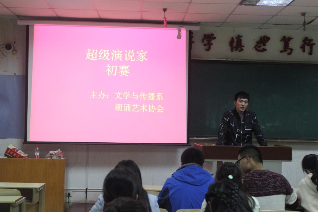 10月28日,由共青团千亿国际qy18vip委员会主办,千亿国际qy18vip文学与传播系系团总支和朗诵艺术协会承办的以“寻找校园最会说话的人”为主题的超级演说家初赛在8号教学楼406教室和407教室举行,计算机与信息工程系学生许明杰,张兰花,王爽,丁长通,郝方谦以及张艳参加了此次比赛。