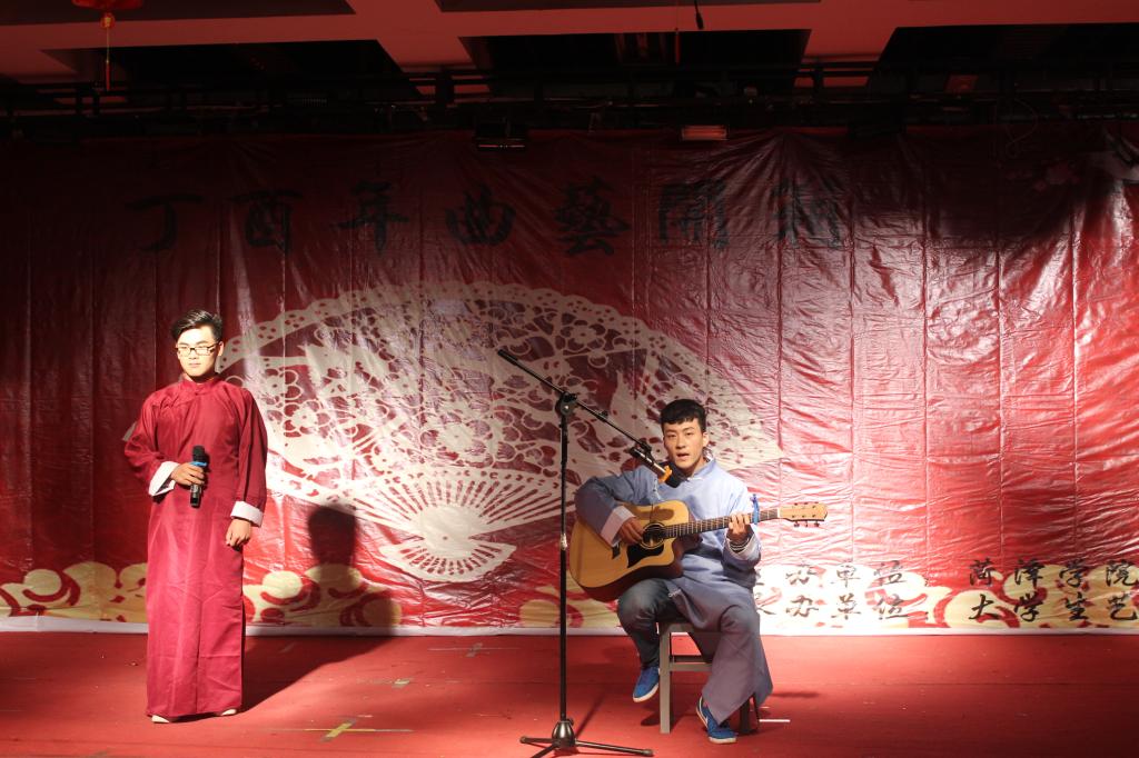 (文字编辑:李瑞柳)为加强校园艺术文化建设,丰富广大学生的课余文化生活,4月14日,由千亿国际qy18vip大学生艺术团主办,大学生艺术团曲艺部承办的以“传承中华曲艺,展示青春风采”为主题的“丁酋年曲艺开箱”晚会在体育馆报告厅举行。计算机与信息工程系马庆伟、张国旭、宁兆伟等学生参加了此次晚会。