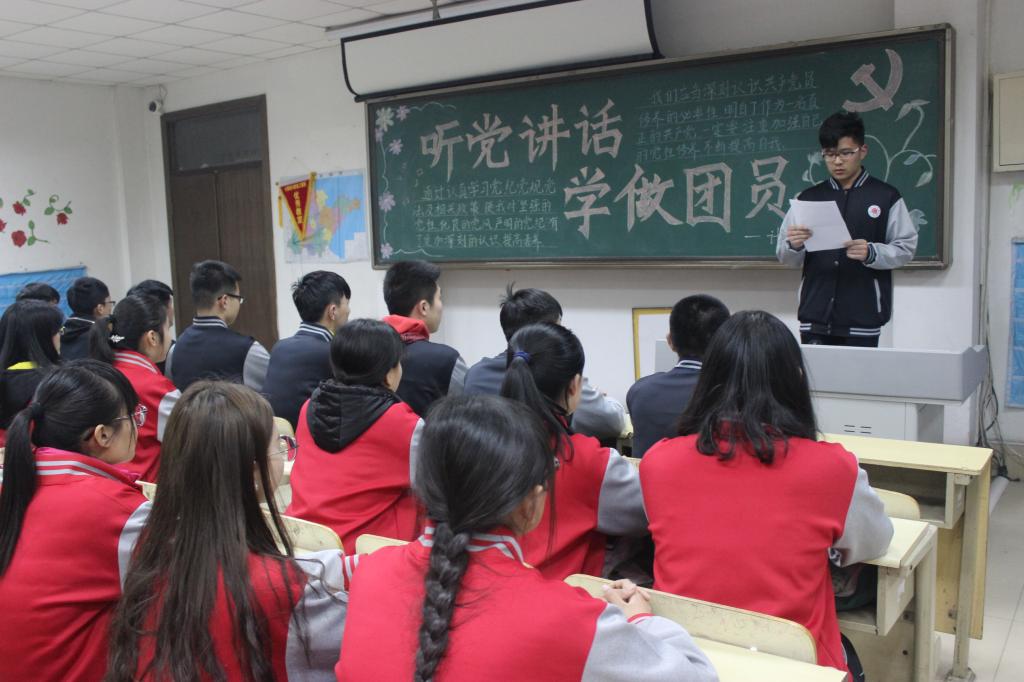 晚上6点50分,参加此次论坛的学生全部衣着系服,十指紧扣、坐姿端正地等待论坛的开始。7点整,论坛正式开始。李悦作为此次活动的主持人首先向学生们说明了此次论坛的目的。紧接着,李超越发表了题为《向习近平总书记学习,做优秀共青团员》的演讲,引导广大团员自觉向党中央看齐,向习近平总书记看齐。《强国复兴,做优秀团员》的PPT播放,强化了团员的先进性和光荣感,坚定了共产主义远大理想和中国特色社会主义理想。临近尾声,学生们在主持人的组织下,举行了与党精神有关的你抢我答活动,增强了团员意识,强化了组织意识和组织纪律,更好地听党话、跟党走。8点30分,论坛正式结束。