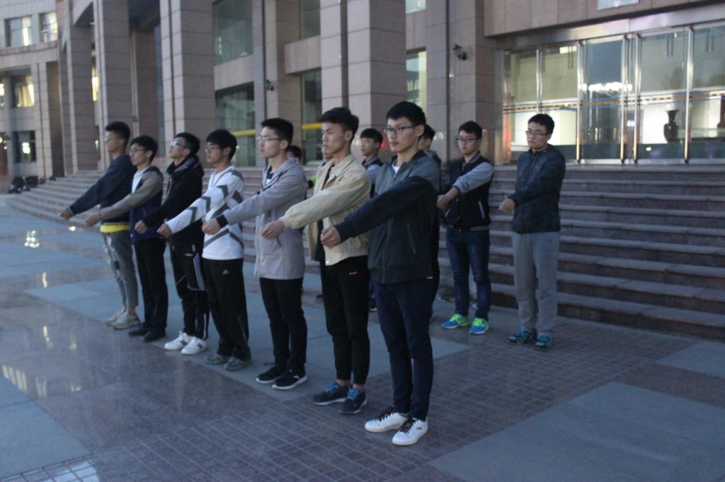 晚上7点整,参加方阵训练的学生在指定地点集合完毕,在张维以及几位大一大班长的带领下开始进行训练。参加训练的学生先是分成几个小的队伍进行齐步正步走训练,经过30分钟的训练后,几个小队伍集合成一个大的队伍进行训练,刚开始方阵训练的学生走的不是特别默契,经过几轮磨合后,方阵训练的学生走的越来越默契。训练一直持续到8点30分结束,训练虽然很累,但却没有一个学生放弃训练,一直坚持到结束。