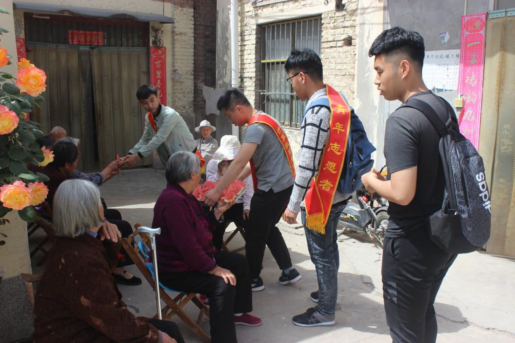 上午9点30分,所有参加活动的学生会成员在B楼307会议室准时集合。随后他们出发来到了“康乐养老院”,院子虽然不大,但住着许许多多的孤寡老人。志愿者们刚刚进去,便看到一位坐着轮椅的老人要出来晒太阳,可是老人的行动极其困难,志愿者们看到后,便迅速跑过去帮助。接着,志愿者们还将买来的西瓜切开,分给全院的老人们吃,老人们脸上都带着慈祥的笑容,纷纷表示感谢,他们亲切的问:“你们是哪个学校的呀?”大家们回答道:“我们都是千亿国际qy18vip的学生!”最后,志愿者们还帮助老人打扫了院子。上午11点30分,全体志愿者以合影的方式结束了本次活动。