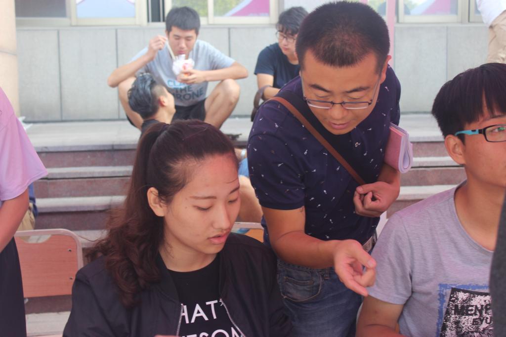 上午7点30分,学生干部在明确分工后,新生报道正式开始。新生在报道处前有序地排队,学生干部向新生发放登记表并耐心教给新生如何去填,提醒新生准备好相关的资料以及保管好自身财产。志愿者则一直穿梭在校门口、教学楼和宿舍楼之间,主动为新生搬运行李到宿舍楼,并向新生和家长介绍学校的教学楼和景点。天气炎热,志愿者即使汗流浃背也毫无怨言。“学姐,我的团员证忘记带了,怎么办?”“学长,这里应该怎么填?”,面对新生这些问题,学生干部和志愿者没有表现出丝毫的不耐烦,认真地回答他们的问题。下午六点,第一天的迎新工作在院老师及学生的共同的努力下完满结束。