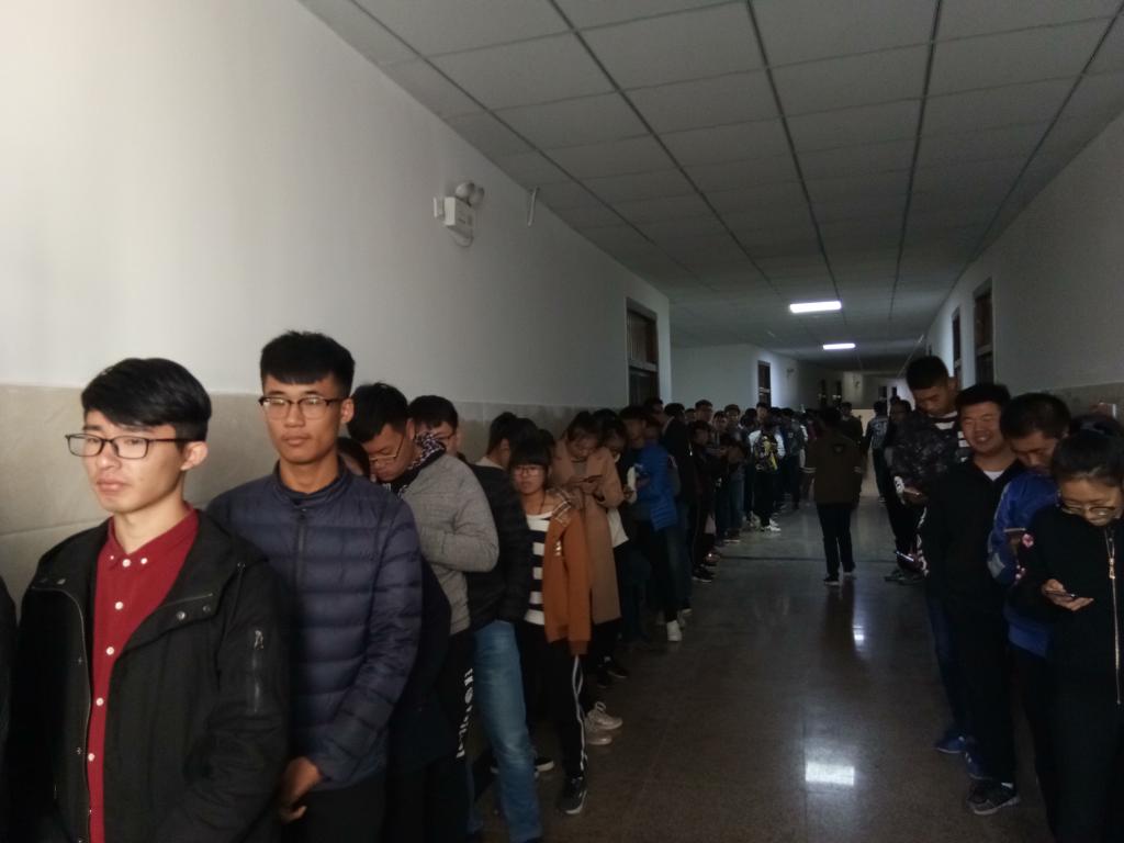 上午8点整,面试正式开始。首先面试的是云计算与大数据、软件开发、软件测试、3D仿真设计与物联网工程专业的学生。面试者们挤满了楼道,空气中弥漫着紧张的气氛,对于大多数人来说,这都将是一个新的挑战。面试过程中,参加面试的学生们先上台进行自我介绍,然后,主席团和各部门部长坐在下面进行提问,面试者依次回答面试官们的问题,一切都有条不紊的进行着。中午12点30分,面试告一段落。下午2点30分,计算机科学与技术(.net)、网络工程与计算机应用技术专业的学生们也相继进行面试。经过一整天的忙碌,下午5点30分,面试圆满结束。