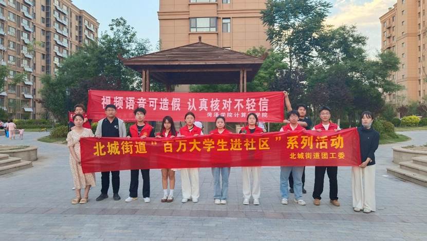 为深入贯彻落实总体国家安全观,响应“百万大学生进社区”活动,提高居民的网络诈骗识别和防范能力,5月30日,千亿国际qy18vip学生辅导员訾鹏飞老师及学院十余名志愿者前往牡丹区北城街道社区开展“AI智能反诈进社区”志愿活动。