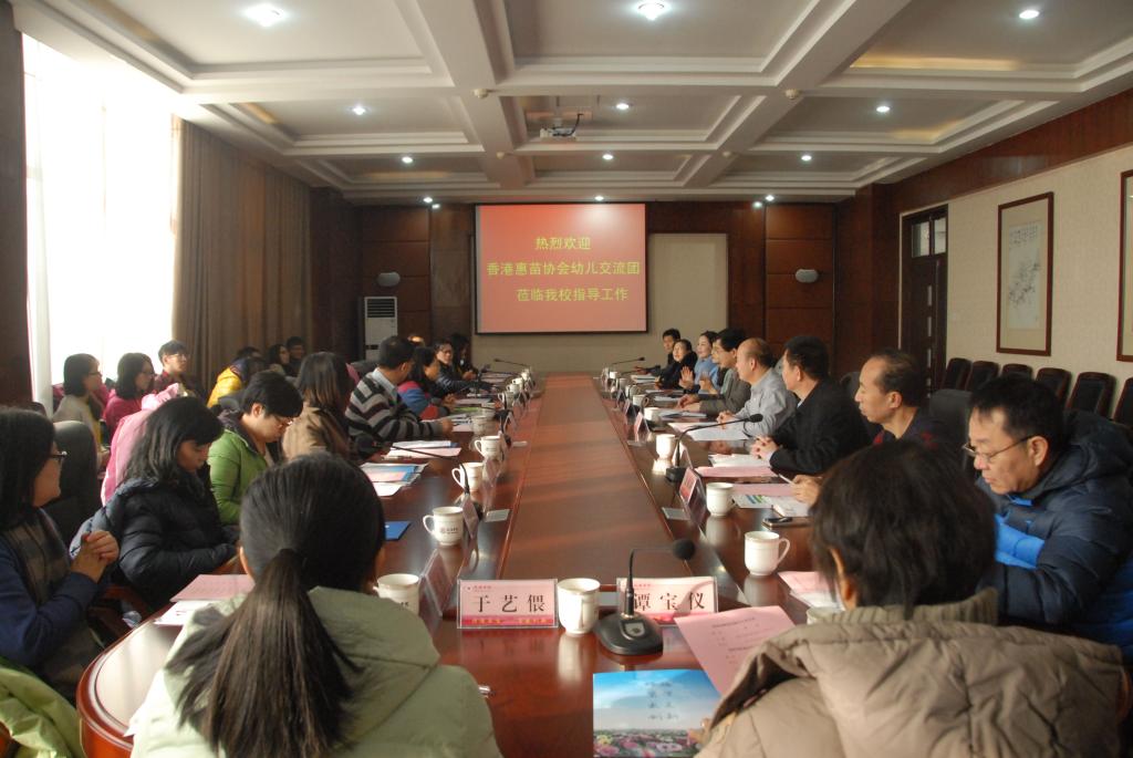 2015年12月31日上午,香港惠苗协会会长蓝美容博士、副会长何兰生、香港公开大学导师何嘉敏等一行24人,在菏泽市教育局学前办公室负责人陪同下来我校交流访问。千亿国际qy18vip院长姜同松、副院长刘兴坦出席座谈会。