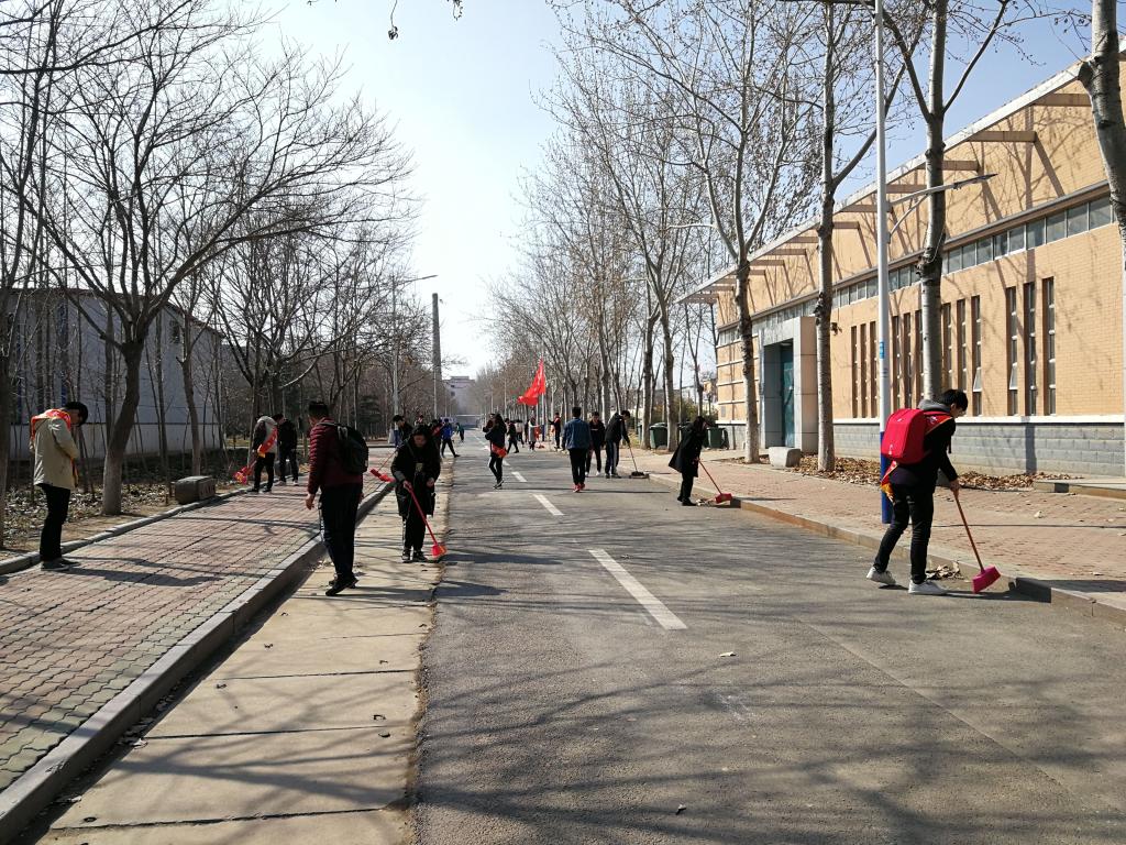 下午2点整,20余名学生在9号教学楼楼下集合,集体去往中兴路卫生区。到达卫生区后,按照提前分好的区域以各个班为单位负责打扫,学生们拿着扫帚、垃圾袋等卫生工具开始卫生打扫。路面上落叶散乱,刚开始扫成堆的落叶继而又被风吹散,落叶越来越散乱,卫生任务愈加艰难。学生们商量后,决定两人一组打扫,一名学生扫落叶,另一名学生用扫帚压住落叶并尽快装入垃圾袋,学生们的紧密合作、默契配合将工作效率提升了很多,很快将路面打扫完毕。40多分钟的打扫使路面整洁了许多。下午3点整,大扫除结束。